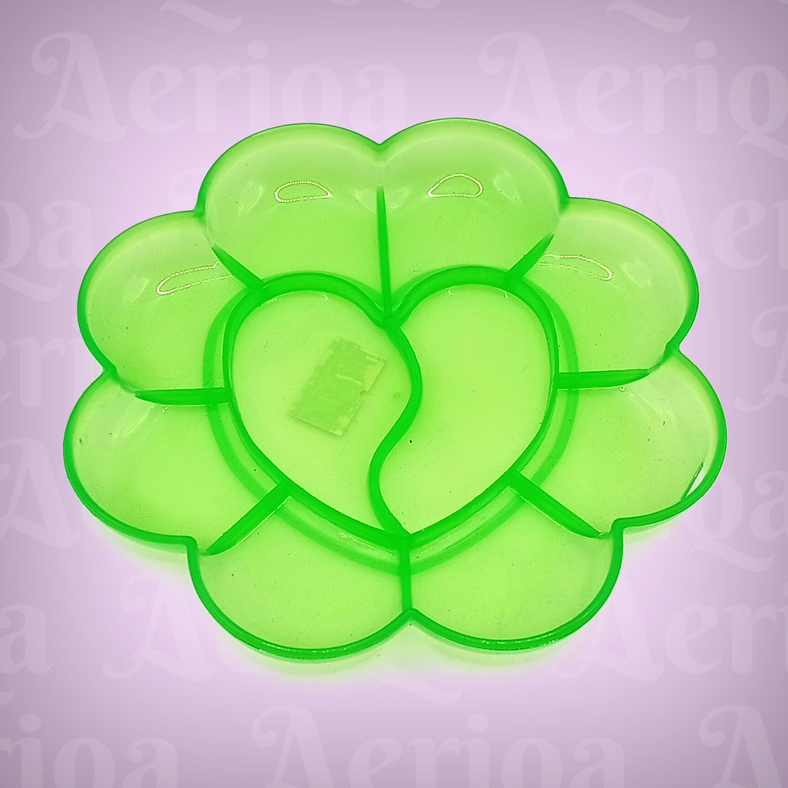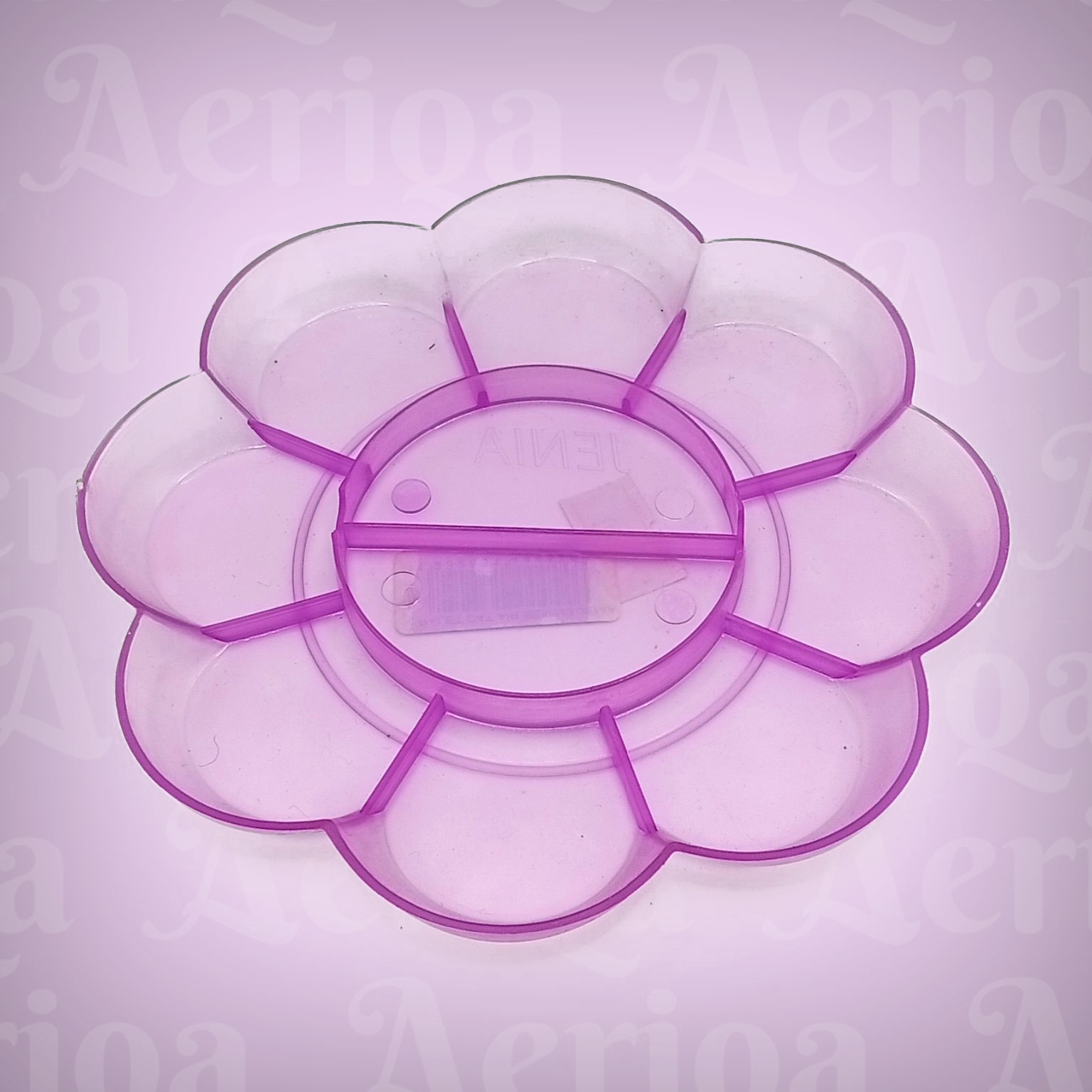 Desainnya yang berbentuk bunga mekar memiliki 10 kompartemen (lubang): 8 di bagian kelopak untuk warna-warna dasar, dan 2 bagian besar di tengah berbentuk hati untuk mencampur warna (mixing area). Material plastiknya tebal dan kokoh, serta memiliki permukaan licin sehingga sisa cat mudah dicuci bersih tanpa meninggalkan noda membandel.